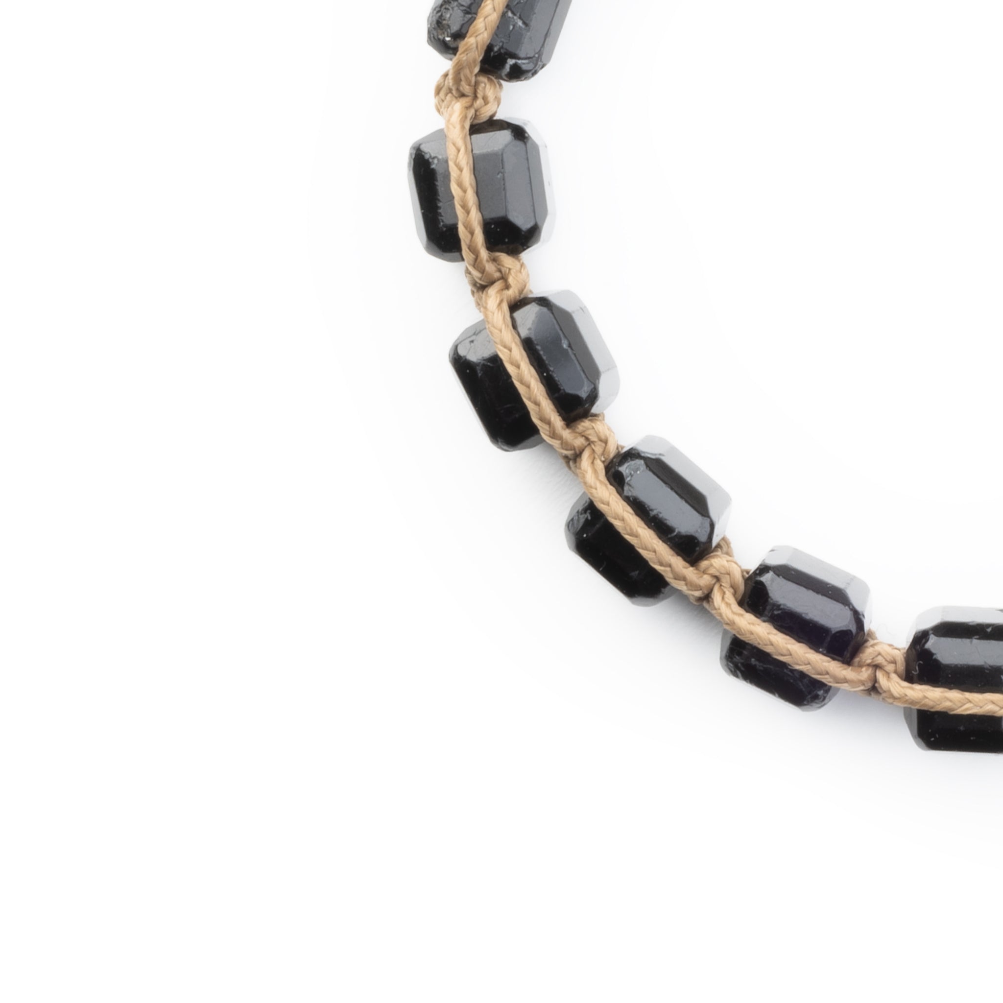 A Turmalin mély, fekete árnyalata, egyedi fényt és ragyogást ad ennek a különleges karkötőnek, amely stílusos megjelenést és kifinomult eleganciát ötvöz. Az ékszer minden pillanatot fényesebbé tesz, miközben finom harmóniát teremt az ásvány sötét csillogása és a paracord nyugtató tónusa között.